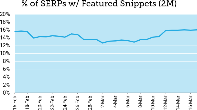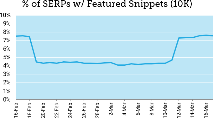 Could this recovery be a fluke of the 10,000-keyword MozCast data set? It's unlikely, but let's dot our i's and cross our t's. Here's the Featured Snippet data from the same time period across roughly 2.2M US/desktop keywords in the STAT data set: