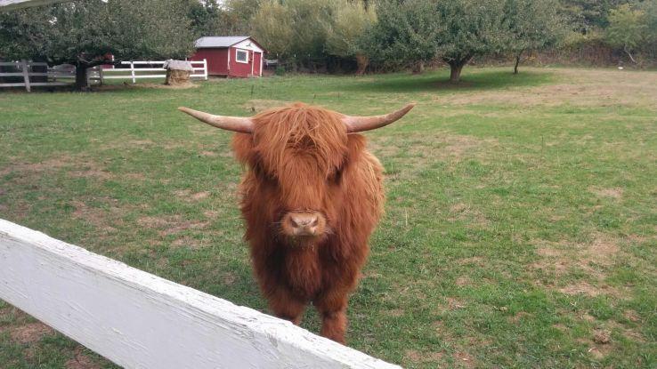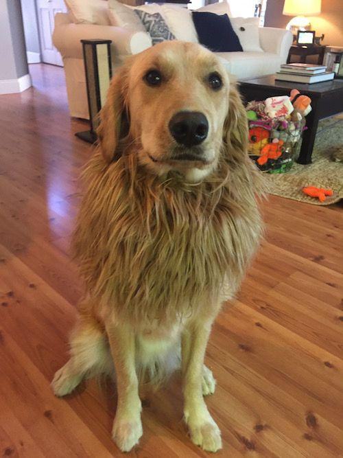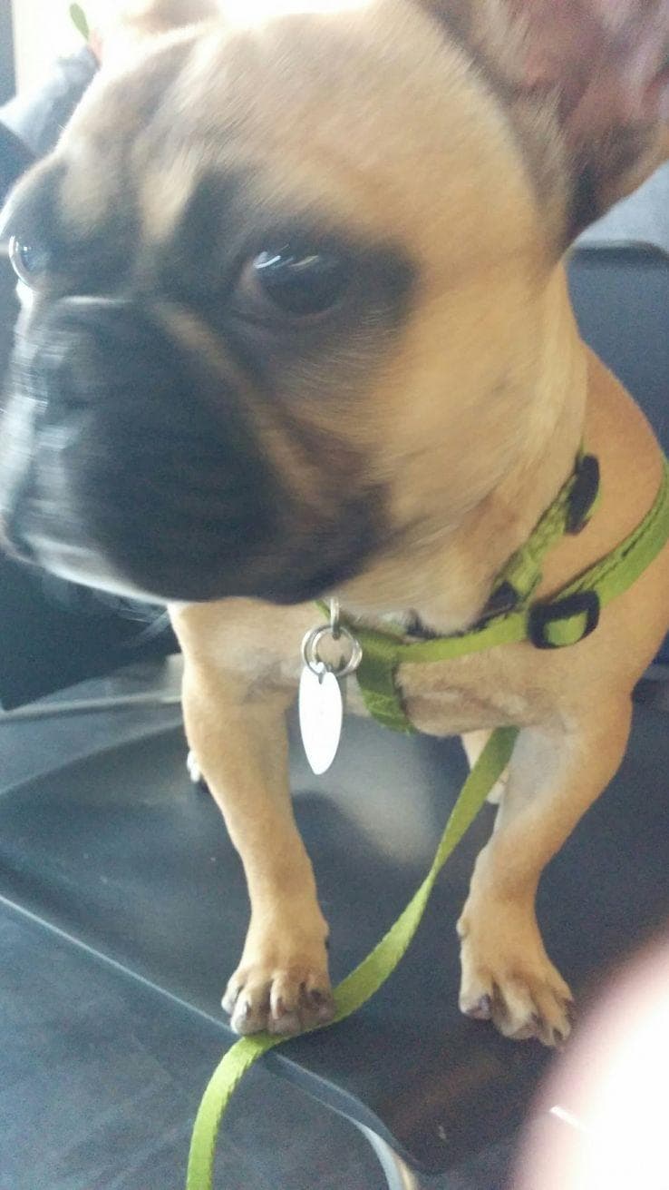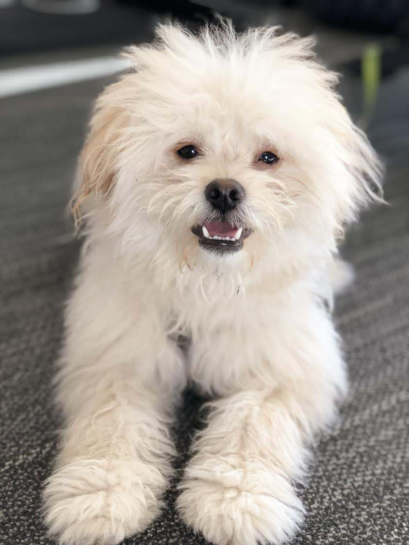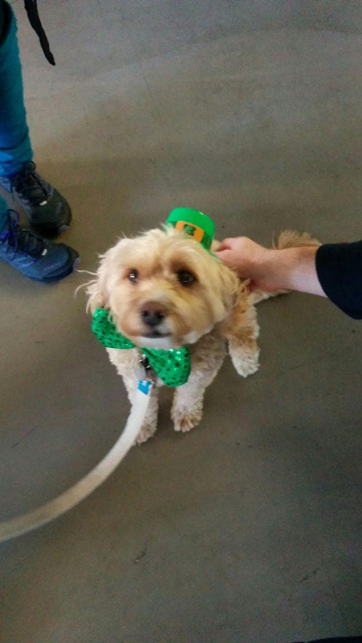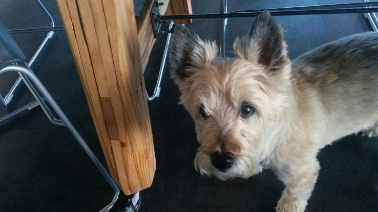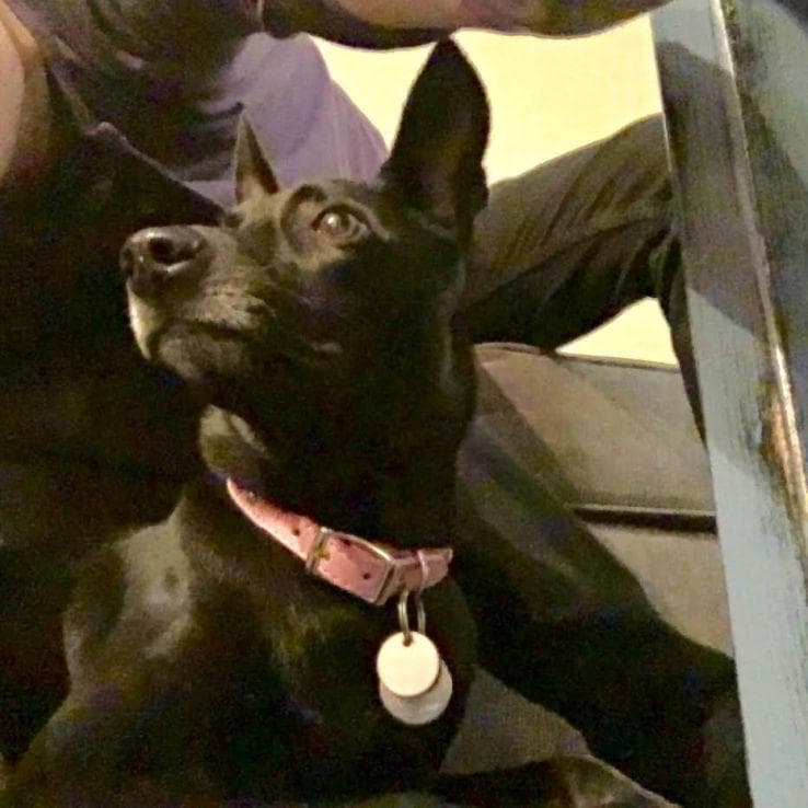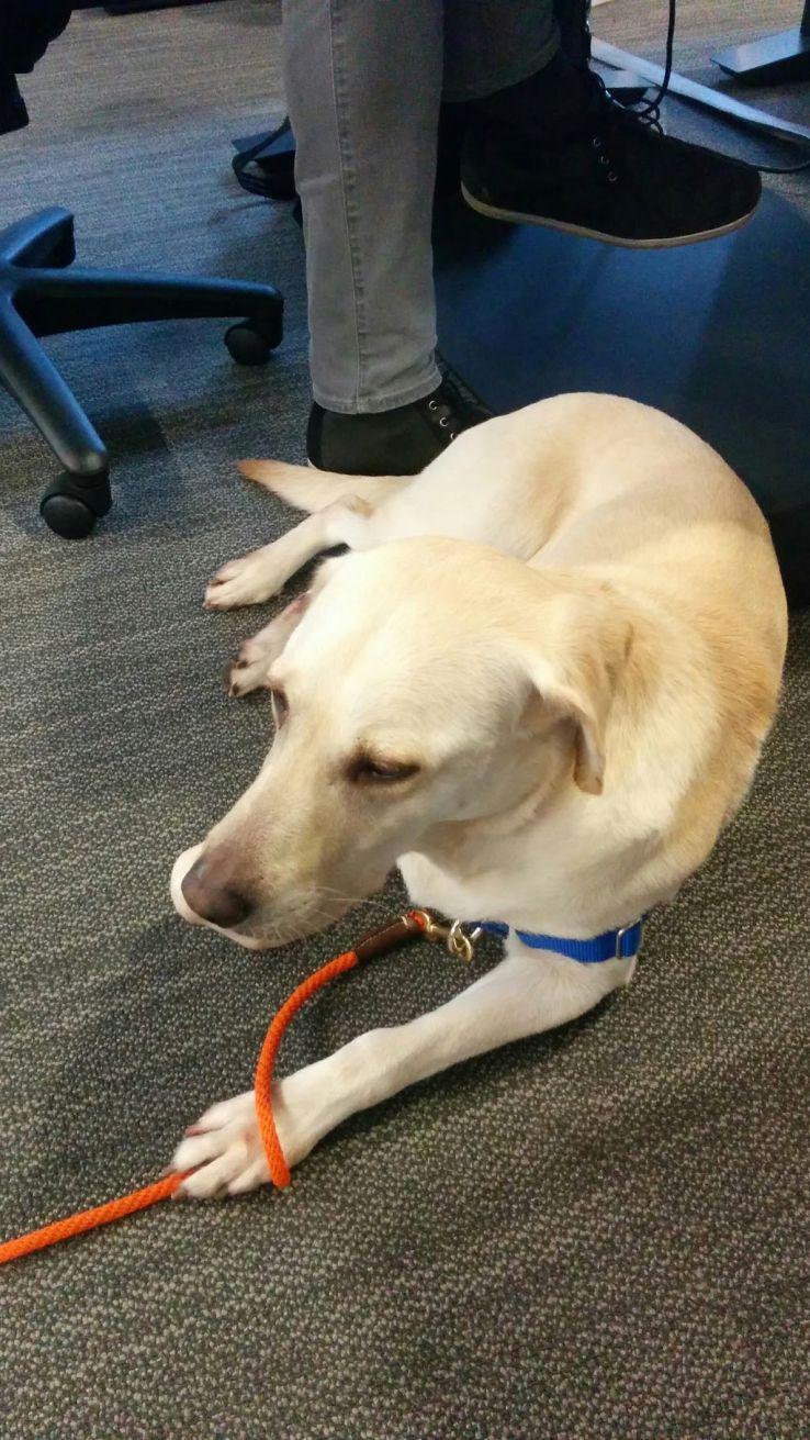I have no idea but this dog sat with me while I ate lunch on Monday.