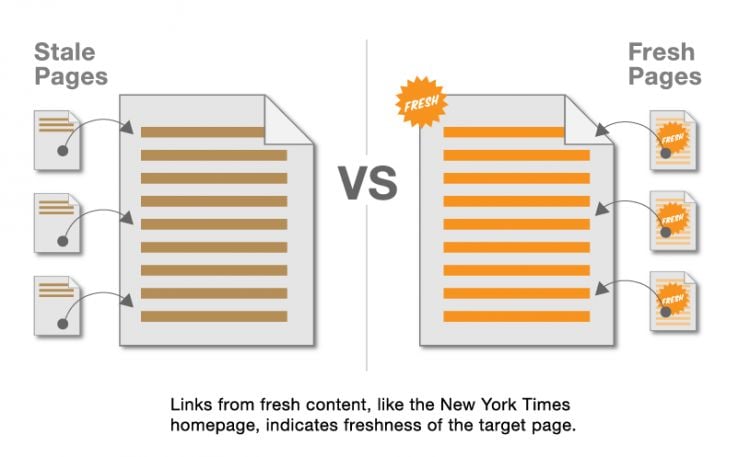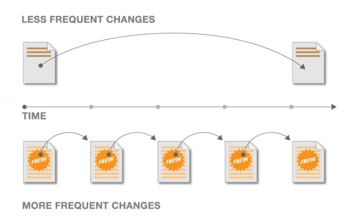 The age of a webpage or domain isn’t the only freshness factor. Search engines can score regularly updated content for freshness differently from content that doesn’t change. In this case, the amount of change on your webpage plays a role.