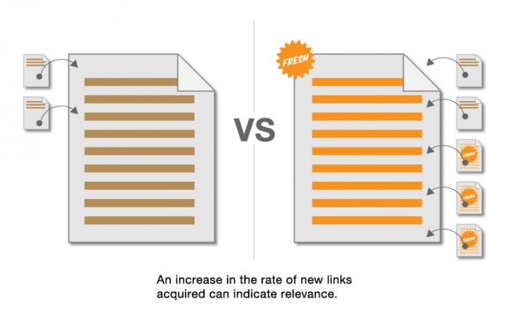 If a webpage sees an increase in its link growth rate, this could indicate a signal of relevance to search engines. For example, if folks start linking to your personal website because you're about to get married, your site could be deemed more relevant and fresh (as far as this current event goes.)
