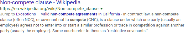 Back in spring of 2015, we reported that Google search snippets seemed to be breaking the 155-character limit, but our data suggested that these cases were fairly rare. At the end of November, RankRanger's tools reported a sizable jump in the average search snippet length (to around 230 characters). Anecdotally, we're seeing many long snippets in the wild, such as this 386-character one on a search for "non compete agreement":
