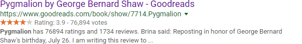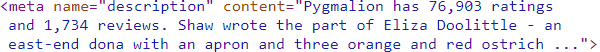 This Goodreads snippet is being pre-truncated. This was true for almost all of the Goodreads meta descriptions in our data set, and may be a CMS setting or a conscious choice by their SEO team. Either way, it's not very useful for our current analysis.