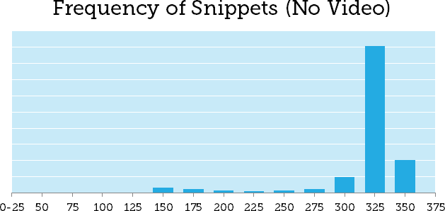 So, let's pull out all of the cut snippets with video thumbnails and the ones where we know the meta description ended in "...". This cuts us down to 26,766 snippets (about 30% of the original 89,909). Here's what the frequency distribution of lengths looks like now: