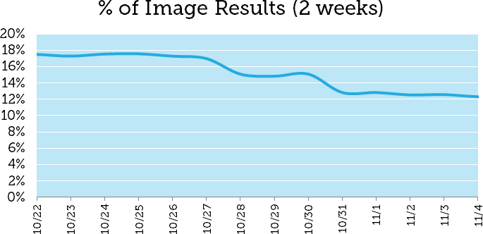 During the exact same period, we also noticed a drop in SERPs with inline image results. Here's a graph of the same 2-week period reported for the other features:
