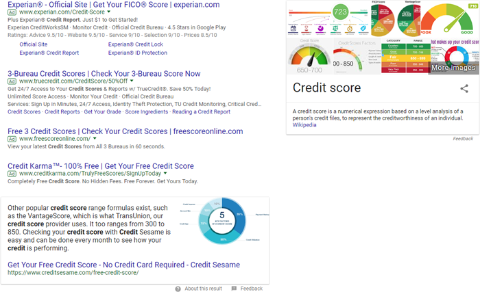In very rare cases, a SERP added the new Knowledge Panel but retained the Featured Snippet, such as the top of this search for "credit score":