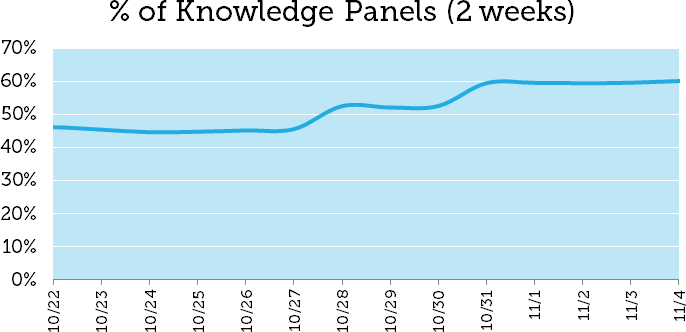 The SERPs that lost Featured Snippets were only one part of this story. Over the same time period, we saw an explosion (about +30%) in Knowledge Panels: