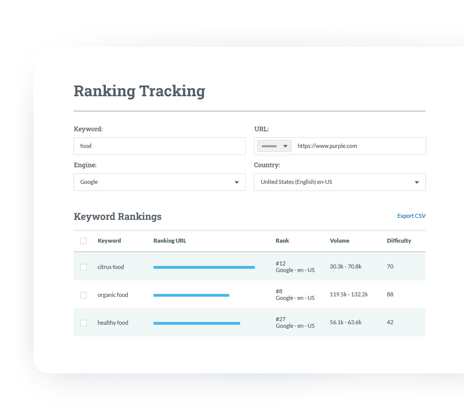 Do better research in less time — accurately track your keyword rankings and keep a close eye on your competitors.
