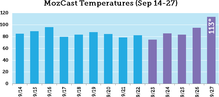 September has been a very volatile month for the SERPs (more on that later in the post), but here’s what we’re seeing in MozCast for the past two weeks, including last night: