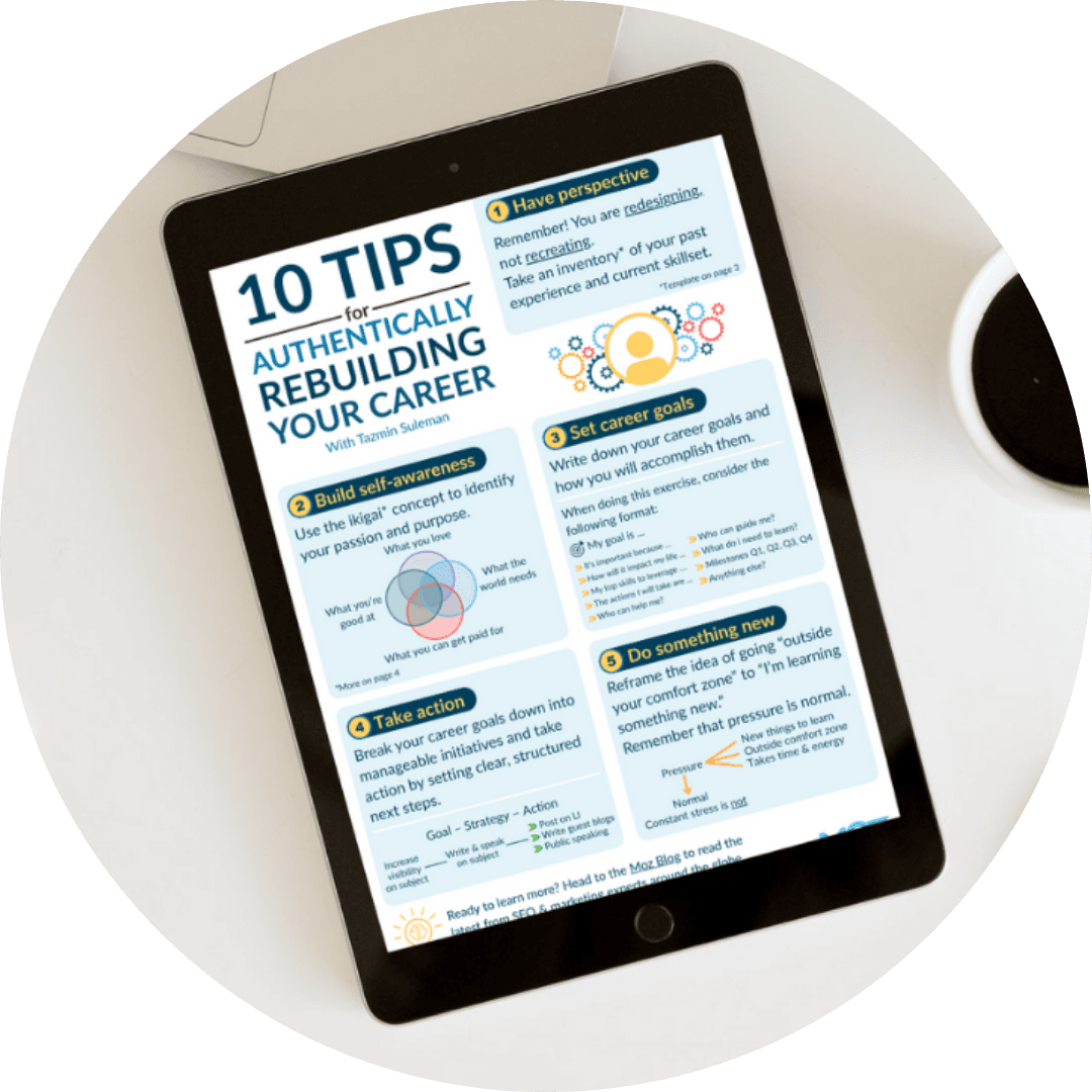 Hello, everyone. My name is Tazmin Suleman. I'm an SEO career coach and also co-host of The SEO Mindset Podcast. Today, we're talking about redesigning your career, but in a way that feels authentic and also resilient.