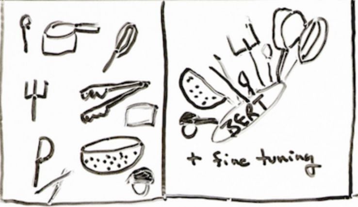 Now consider a be-all-end-all kitchen utensil that is 11 of your most frequently used utensils in one. This is BERT, the one kitchen utensil that does eleven of the top natural language processing solutions really, really well after it's fine-tuned.