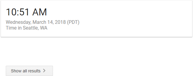 On Wednesday, Google launched a large-scale experiment, removing organic results from a small set of searches with definitive answers such as this one for "What time is it in Seattle?":